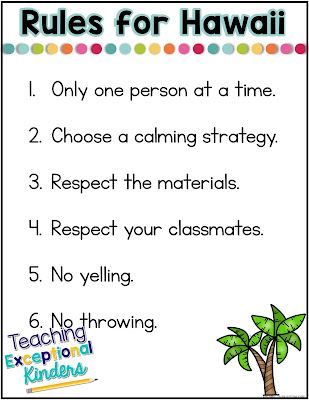 In our class, we use logical consequences so I dealt with that on a case by case basis. You can really make that decision for what will work best in your classroom. Do you need to have established consequences set in advance? Will you deal with things as they come? Whatever you choose to do, I would suggest not permanently banning any student from visiting Hawaii. Maybe Hawaii needs to close for a few days or certain students need a few days off. However, the point of Hawaii is to give all kids a safe space, not exclude them further from the group.
